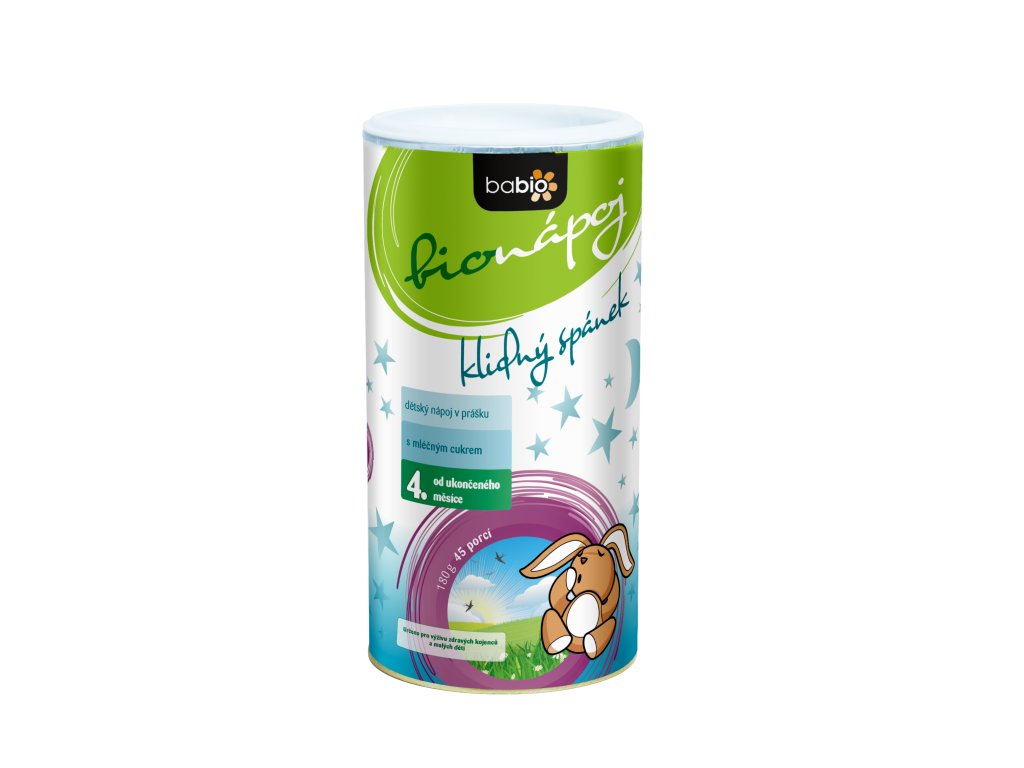 Mimořádně jemný dětský BIO nápoj v prášku pro klidný spánek dětí a usínání, vhodný od ukončeného 4. měsíce věku. Složení bionápoje BABIO KLIDNÝ SPÁNEK plně odpovídá nejvyšším požadavkům na výživu kojenců a malých dětí. Bylinné složení napomáhá odstranit neklid dítěte a přináší klidný spánek, přispívá ke správnému pitnému režimu dětí.
