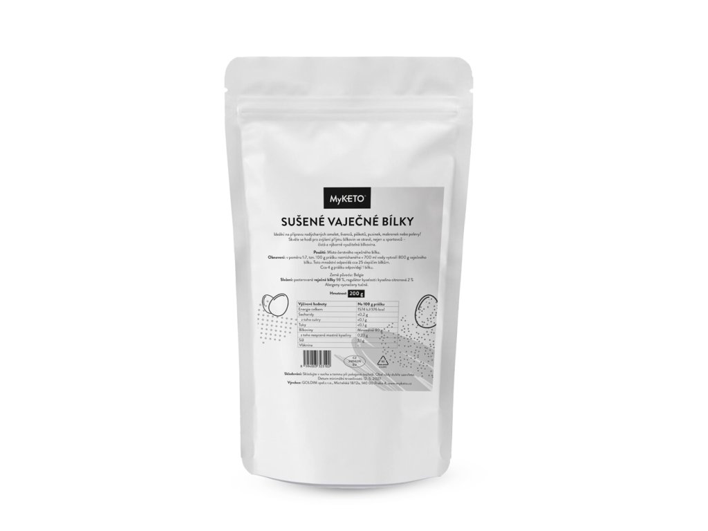 Sušené vaječné bílky využijete jako náhradu za ty čerstvé, pro vysoký obsah bílkovin a nízký obsah tuků se skvěle hodí nejen pro sportovce. Díky neochucené formě je můžete využít nasladko pro výrobu různých dezertů například makronky, domácí müsli tyčinky, sněhové pusinky nebo naslano, třeba k snídani jako míchaná vajíčka.