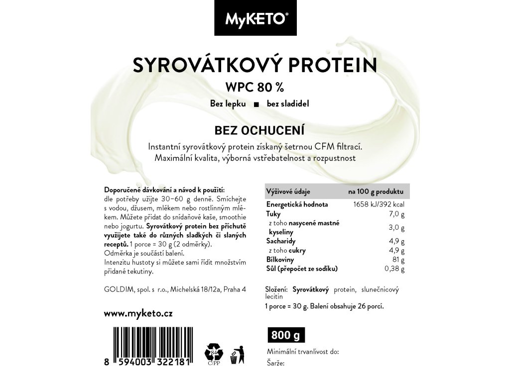 Výborně vstřebatelný instantní syrovátkový protein WPC 80 % (whey protein concentrate) bez příchuti. Filtrovaný metodou CFM za nízkých teplot, vysoký obsah bílkovin a větvených aminkoyselin (BCAA).